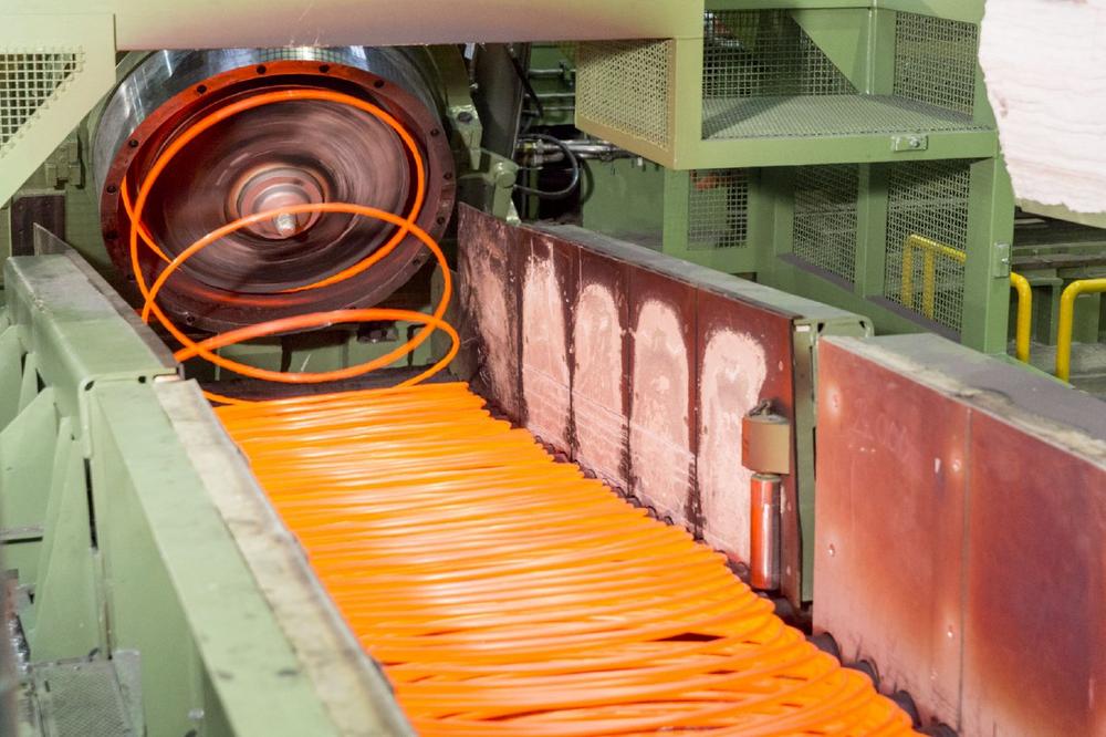 Diese wird durch einen Kühl- und Ausgleichsloop vor dem Block verwirklicht. Das Walzprogramm umfasst Drahtabmessungen von 5,5 bis 25 Millimetern im Durchmesser und Rippenstahl mit Abmessungen von 6 bis 16 Millimetern im Durchmesser, die mit bis zu 115 Metern pro Sekunde fertiggewalzt werden.