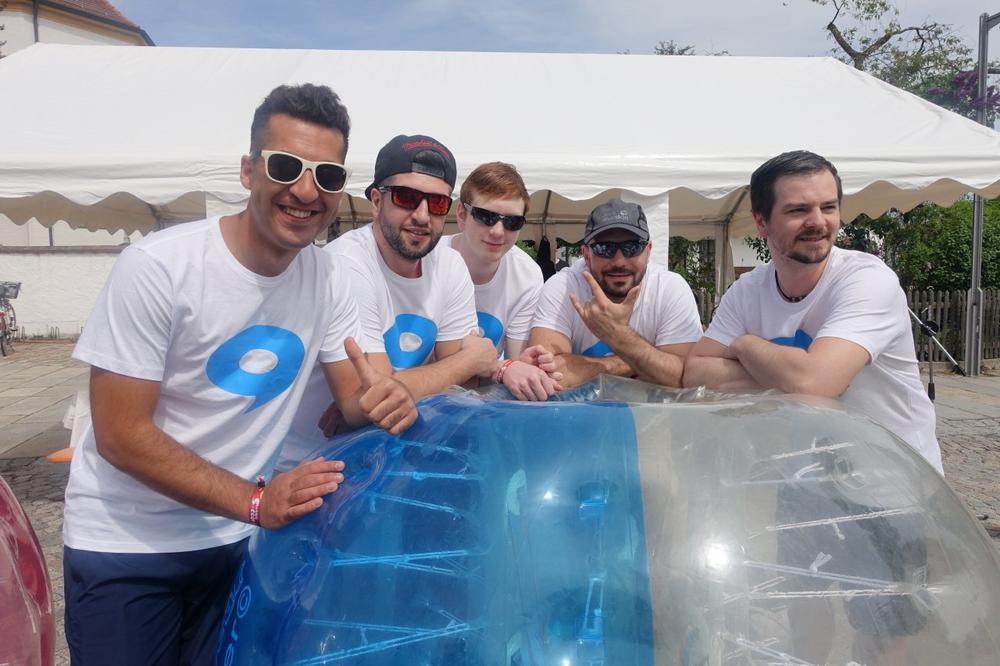 Die CRM-Spezialisten wollten sich den ultimativen Spaßfaktor nicht entgehen lassen. Hochmotiviert und im Team-Outfit traten „The Brains“ in mit Luft gefüllten Plastikbällen die Spiele an. Zunächst ging es noch etwas zögerlich zu, sich mit dem Plastikball gekonnt zu bewegen. Dann aber wurde einiges für die Zuschauer geboten: sensationelle Überschläge, aufgeschürfte Knie, Bälle flogen zur benachbarten Eisdiele und räumten die Tische mehrmals ab oder manchmal sah man einen Spieler aufgrund der Schwerkraft einfach so umfallen.
