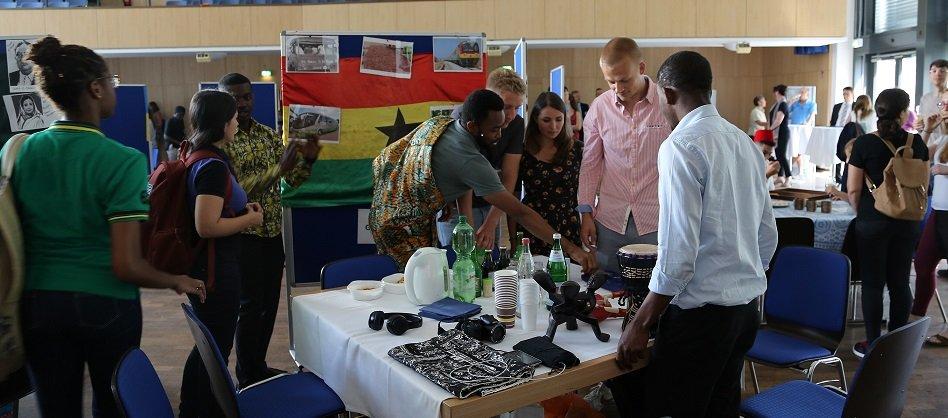 In jedem Jahr wird ein Land hervorgehoben und vorgestellt. Andrew Adams stellte mit Stolz und Freude sein Heimatland Ghana vor, brachte Fakten, Zahlen und viele Informationen zusammen, sodass hier ein Land in seiner ganzen Bandbreite sichtbar wurde. Er räumte auch gleich mit einem Klischee auf, „Afrika ist mehr als hungernde Kinder“ betonte er. Die Lebensfreude und Innovationskraft dieses Kontinents vermittelte er eindrücklich und legte Wert auf eine kontrastreiche und informative Darstellung unterschiedlicher Gesichter dieses afrikanischen Landes. Das Bühnenprogramm schloss mit einem typischen Volkstanz bulgarischer Tänzerinnen und Tänzer in traditioneller Kleidung.