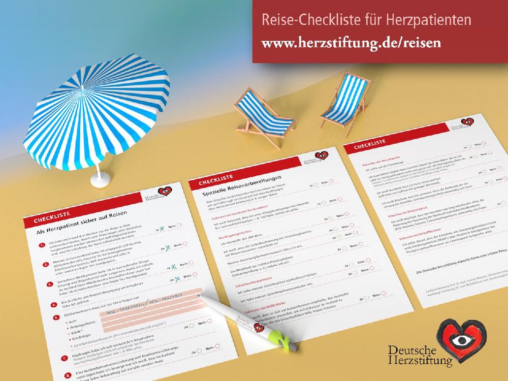 Tipp: Die kostenfreie Reise-Checkliste für Herzpatienten kann bei der Herzstiftung unter www.herzstiftung.de/reisen oder per Tel. unter 069 955128400 angefordert werden.