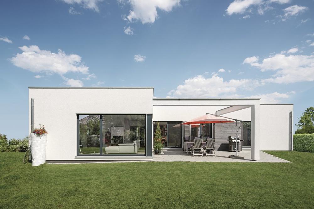 Die von WeberHaus vorgeplanten Bauvorschläge passten nicht ganz zu den Vorstellungen der Bauherren. Daher war klar, dass es ein individuell gestalteter Bungalow werden sollte. „Gemeinsam mit einem Architekten konnten wir all unsere Wünsche umsetzen“, freut sich Ulrick Rücker. „Besonders wichtig war uns eine großzügige Raumgestaltung und natürlich sollte unser neues Zuhause energieeffizient sein.“ Die Photovoltaikanlage und das Heizungssystem, basierend auf einer Luft-Wasser-Wärmepumpe mit einem zentralen Lüftungsgerät und einer Fußbodenheizung, tragen nicht nur zu einem geringen Energieeinsatz bei, sondern sorgen auch für eine angenehme Wohlfühlwärme. Dank der hervorragend dämmenden Gebäudehülle ÖvoNatur lässt sich die Wärmepumpe-Technik besonders effizient einsetzen.