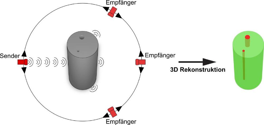 Um die noch nicht ausgeschöpften Möglichkeiten dieser Technik stärker zu nutzen und dabei einen möglichst umfassenden Einblick in die Prüfkörper zu erlangen, arbeitet das SKZ zusammen mit dem Lehrstuhl für Digitale Kommunikationssysteme der Universität Bochum an der Entwicklung eines Luftultraschall-Tomografen. Mit besonderem Augenmerk auf den Einsatz in der Kunststoffextrusion soll dabei eine kontaktlose, dreidimensionale Defekterkennung ermöglicht werden.