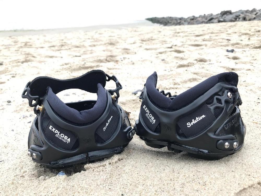 „Die feste Sohle schützt, der durchdachte Ballenkorb bietet den Hufballen Schutz vor Druckstellen und sorgt gleichzeitig für den perfekten Halt. Leichtes An- und Ausziehen und Dank der repräsentativen Grössenpalette sowie einem einfachen Verschlusssystem ist die Anpassung an den Hufen absolut praktikabel.“