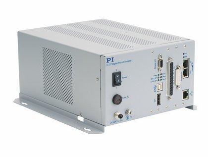 Ein für den Piezobetrieb optimierter P-I-Regler mit zwei Notchfiltern ermöglicht eine hohe Regelbandbreite (20 kHz). Intelligente Regelalgorithmen minimieren die Einschwingzeiten, dadurch lassen sich Wiederholgenauigkeiten bis in den Sub-Nanometer-Bereich erreichen. Weitere Merkmale des Digitalcontrollers sind eine Mechanik- und Elektronik-Linearisierung mittels Polynomen 4. Ordnung, ein integrierter Datenrekorder, ein ID-Chip für eine schnelle Inbetriebnahme und Austauschbarkeit der Systemkomponenten sowie eine unterlagerte, programmierbare Driftkompensation. Optional bietet der E-727 eine dynamische digitale Linearisierung. Diese DDL-Funktion senkt Phasenverschiebung und Bahnfehler bei dynamisch-periodischen Anwendungen auf ein nicht wahrnehmbares Maß. Das ist beispielsweise für Scanning-Anwendungen wichtig, bei denen es darum geht, eine bestimmte Position zu identifizieren und präzise wieder anzufahren.