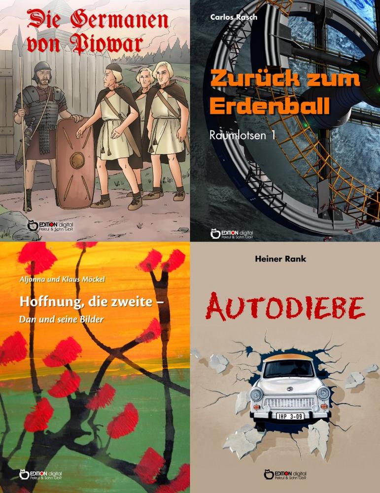 Und wie am Anfang dieses Newsletters bereits angekündigt, folgt hier noch ein weiteres Angebot zum Supersonderpreis von nur 99 Cents. Noch fast druckfrisch ist der Titel „Die Germanen von Piowar“ von Dagmar Bulmann – ebenfalls eine Eigenproduktion der EDITION digital aus Pinnow (oder auf Germanisch Piowar): Im Jahr 18 unserer Zeitrechnung muss Aldemar in einem kleinen germanischen Dorf die Kriegerweihe abbrechen, weil er fast erstickt wäre. Er ahnt lange nicht, welche Rolle sein Bruder Ekwin dabei gespielt hat. Seit diesem Tag wird er nicht nur von seinem Vater, sondern vom ganzen Dorf verachtet. Weil seine Ehre beschmutzt ist, will er nicht mehr in Piowar leben. Aldemar flieht gemeinsam mit seinen Freunden, die sich ebenfalls nicht von ihren Vätern verstanden fühlen und das Abenteuer suchen. Ihr Ziel ist Rom, weil ein Händler ihnen von dieser Stadt vorgeschwärmt hat. Im von den Römern besetzten Germanien trennen sich die Wege der Freunde. Aldemar erreicht als Einziger Rom und lebt dort über zehn Jahre. In dieser Stadt erlebt er Verrat und Intrigen, aber auch die Freundschaft mit dem jungen Seneca. Doch dann verliebt er sich in eine außergewöhnliche Frau, bis er auch von dort wieder fliehen muss. Zur selben Zeit passieren in dem kleinen Dorf Piowar merkwürdige Dinge. Der Roman folgt weitestgehend den historischen Tatsachen und zeichnet ein interessantes Bild über das Leben der einfachen Menschen im freien Germanien. Und so geht es los: