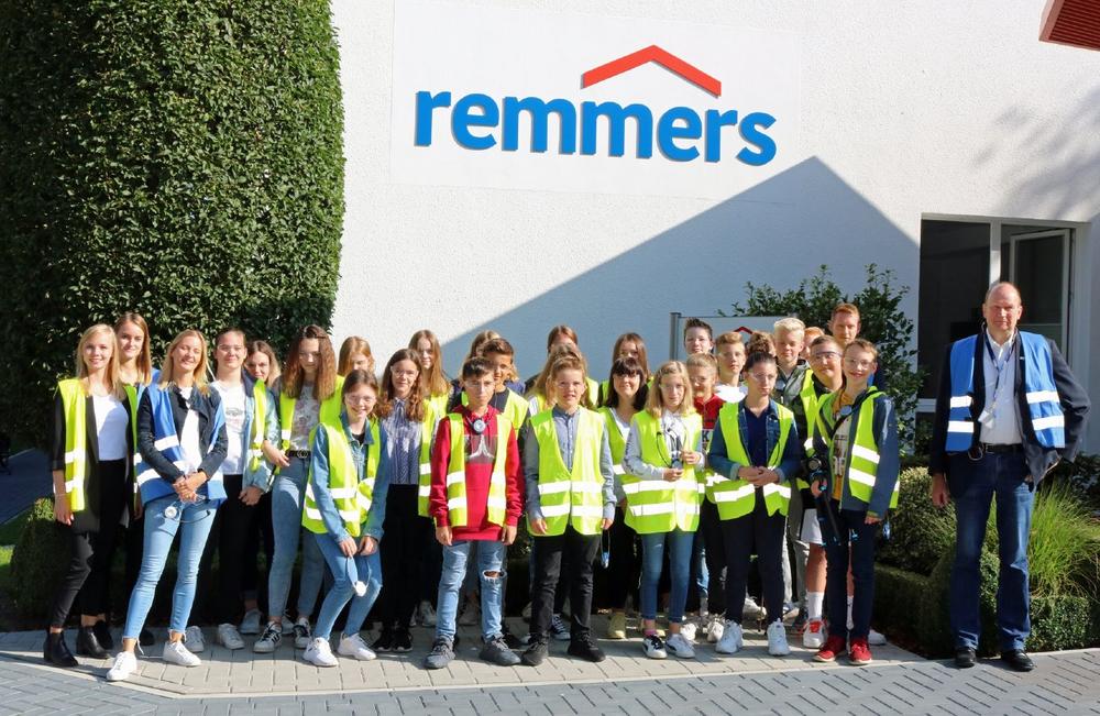 Das Motto ihrer Projektwoche „Startklar für den Beruf“ hat die 8. Realschulklasse der Peter-Ustinov-Schule aus Hude ernst genommen: Zusammen mit ihrer Lehrerin Sibylle Kropp verbrachten die Jugendlichen einen Vormittag am Löninger Hauptsitz der Firma Remmers, einem der größten Arbeitgeber der Region. In dem mittelständischen Unternehmen informierten sich die jungen Gäste vor allem über die Vielfalt der von Remmers angebotenen Ausbildungsgänge. Nach einer Firmenpräsentation mit entsprechenden Bewerbungshinweisen folgte für die Gruppe eine Betriebsbesichtigung. Im Remmers Forum wurden die Gäste dann gegen Mittag mit speziellen „Hausaufgaben“ verabschiedet, denn die Schülerinnen und Schüler widmeten sich in Kleingruppen verschiedenen Themen rund um das familiengeführte Unternehmen. Die Ergebnisse wurden am Ende der Projektwoche den Eltern präsentiert. Weitere Informationen erhalten Sie unter www.remmers.com.