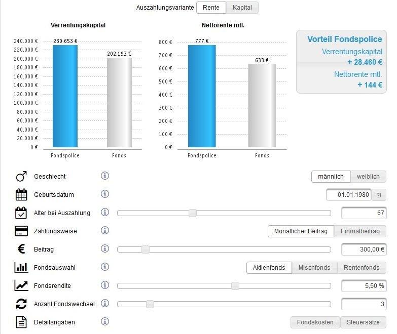 Der im Beratermarkt überaus beliebte FondsanlagenOPTIMIERER des IVFP ermöglicht den neutralen Vergleich zwischen Fondspolicen und einer Fonds-Direktanlage unter Berücksichtigung steuerlicher Effekte. Berater haben die Möglichkeit den FondsanlagenOPTIMIERER kostenfrei über die folgenden acht Versicherungsgesellschaften zu nutzen: Allianz, Canada Life, DEVK, HDI, neue leben, Standard Life, Stuttgarter Versicherung und Swiss Life. Durch die Integration der jeweiligen Tarife werden auch tarifspezifische Effekte, wie die Weitergabe von Kickbacks oder die Verwendung der besonders günstigen institutionellen Anlageklassen, abgebildet.