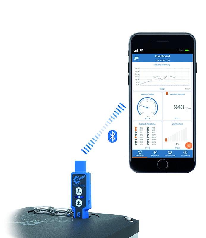 Der NORDAC ACCESS BT dient dabei als Brücke zwischen einem mobilen Endgerät und der App. Der Bluetooth-Stick wird direkt am Frequenzumrichter eingesetzt. Der Anwender erhält so einen praktischen Zugriff auf die Antriebsdaten und behält die volle Zugangskontrolle. Der NORDAC ACCESS BT kann auch ohne die App genutzt werden, beispielsweise zur Sicherung von Parameter-Daten. Sollte der Frequenzumrichter beschädigt werden oder der Antrieb getauscht werden müssen, lässt sich so die ursprüngliche Parametrierung bequem über den Stick wieder einspielen. Auch der Parameter-Transfer zwischen einem Antrieb und einem PC ist möglich. Die App ist für die Betriebssysteme iOS und Android im App Store bzw. bei Google Play erhältlich.
