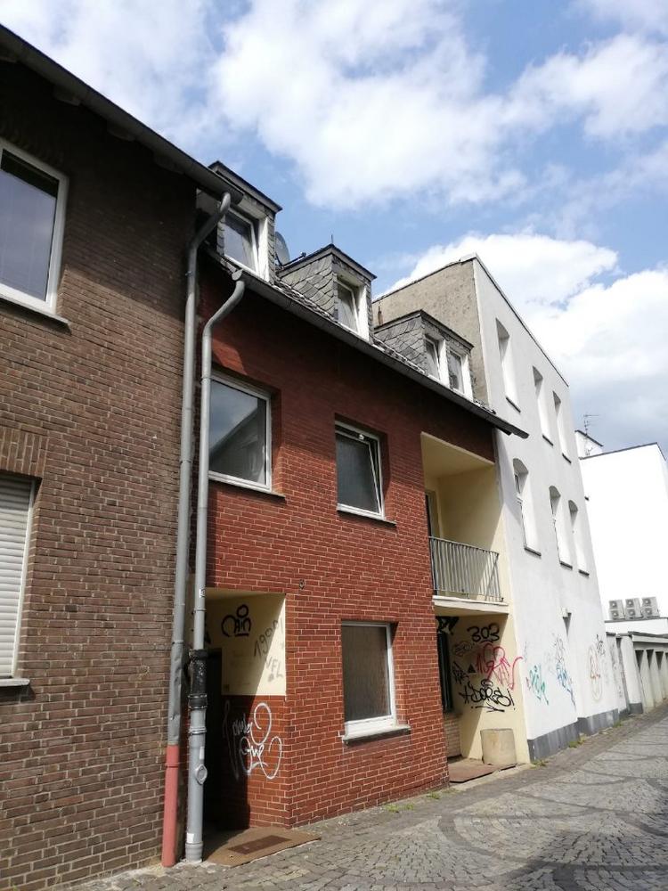 Das Wohnhaus in der Krichelstraße steht leer. Es gehört zum Gebäudekomplex „Hotel Oberstadt“ und soll mittelfristig dem geplanten Durchstich zwischen Museum und Hindenburgstraße weichen. „In diesem Link des Goldtons über die Museumsbrücke hin zum Eingangspavillon wird an die Idee von Hans Hollein erinnert, eine Museumspassage durch das Hotel Oberstadt hindurch zu führen“, erläutert Susanne Titz, Direktorin des Museums Abteiberg.