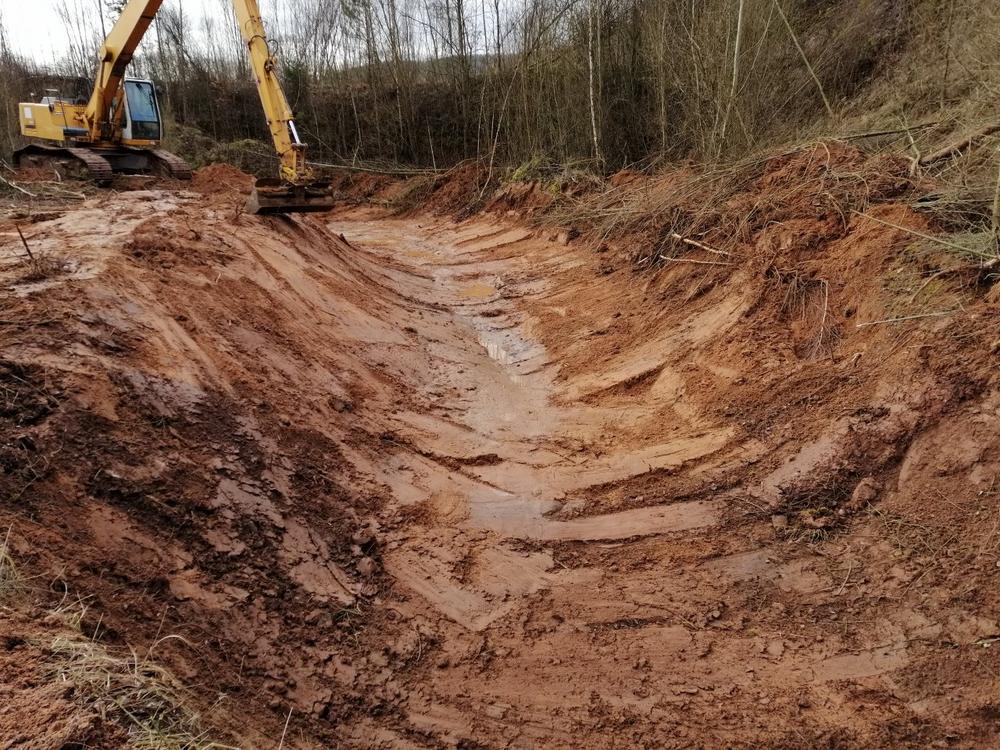 Eine weitere Großmaßnahme, um die Strukturvielfalt zu erhöhen, wurde im Naturschutzgebiet Gipskarstlandschaft Hainholz bei Osterode bereits Anfang Dezember über vier Tage durchgeführt. Hier kamen mit Langarm- und Kettenbagger zwei Großmaschinen zum Einsatz, die mehrere Erdfälle für Kammmolch und Geburtshelferkröte saniert haben. Weiterhin wurden Versteck- und Überwinterungsplätze in direkter Gewässernähe angelegt.