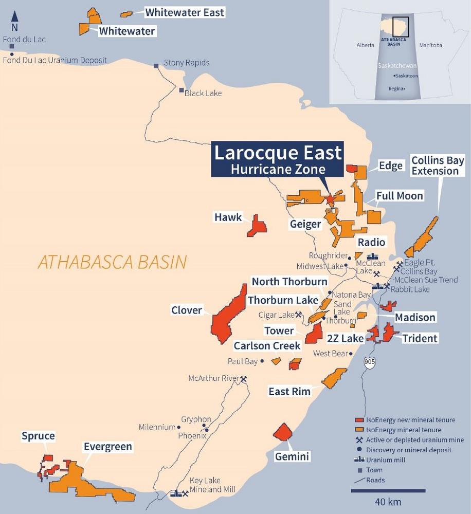 IsoEnergy is a well-funded uranium exploration and development company with a portfolio of prospective projects in the eastern Athabasca Basin in Saskatchewan, Canada. The Company recently discovered the high-grade Hurricane Zone of uranium mineralization on its 100% owned Larocque East property in the Eastern Athabasca Basin. IsoEnergy is led by a Board and Management team with a track record of success in uranium exploration, development and operations. The Company was founded and is supported by the team at its major shareholder, NexGen Energy Ltd.