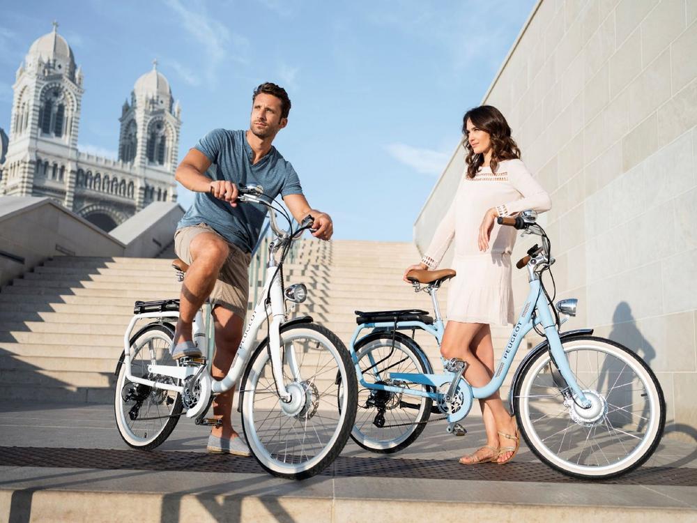 Ideal für die Stadt eignet sich das e-Bike <strong>PEUGEOT eCO2</strong>. Mit einer 300-Watt-Batterie ausgestattet, fährt das Modell rein elektrisch bis zu 80 Kilometer. Wer die Variante mit einer 400-Watt-Batterie wählt, kann 110 Kilometer zurücklegen.