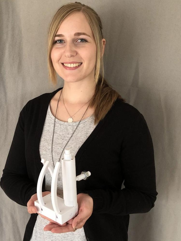 „Ein Bekannter von mir fährt gerne Handbike, konnte das aber nur mit zusätzlicher Hilfe“, erklärt die Master-Studentin im Studiengang Industrial Management, wie sie auf gerade dieses Thema für ihre Masterarbeit gekommen ist. Sie konstruierte das Kopplungssystem, das sich mithilfe einer Druckplatte schließen und mittels eines Knopfs auf der Oberseite wieder öffnen lässt. „Diesen Knopf können Tetraplegiker mit dem Kinn oder der Stirn öffnen und sind so nicht mehr auf fremde Hilfe angewiesen“, beschreibt Tanja Heider die Innovation an der Kopplung. Gefertigt wurde diese im 3D-Druck. „Das gibt uns die Möglichkeit, die einzelnen Teile ganz schnell und einfach an den jeweiligen Nutzenden anzupassen und zu produzieren“, erklärt die Studentin.