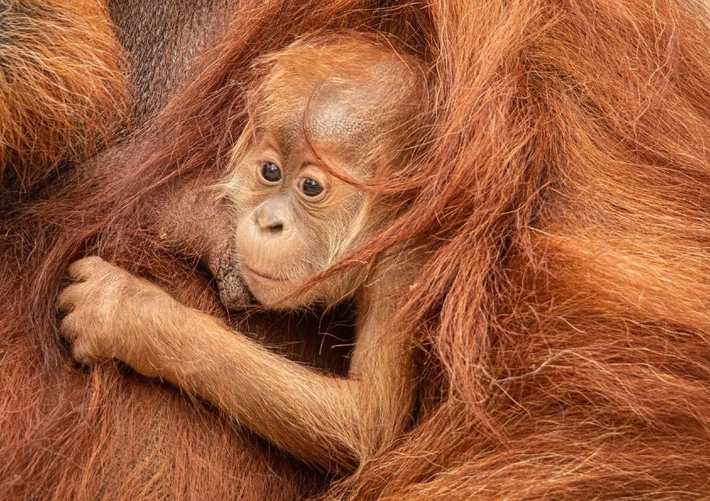 Batu entwickelt sich prächtig. Seit seiner Geburt am 24. Mai diesen Jahres ist der kleine Orang schon deutlich aktiver geworden, er interessiert sich immer mehr für die anderen Familienmitglieder und ist wacher und aufmerksamer. Inzwischen kann sich Batu sogar selbstständig bei Mama Toba festhalten, sodass die vierfache Affenmutter wieder freier und beweglicher durch das Orang-Utan-Haus klettern kann. Dabei beobachtet der kleine Batu seine Mama ganz genau und lernt, was es heißt, ein Orang-Utan zu sein. Die anderen Mitglieder der Orang-Gruppe haben sich mittlerweile an Batu gewöhnt und reagieren weniger aufgeregt auf den Kleinen. Insgesamt leben neun Sumatra Orang-Utans im Tierpark Hagenbeck.
