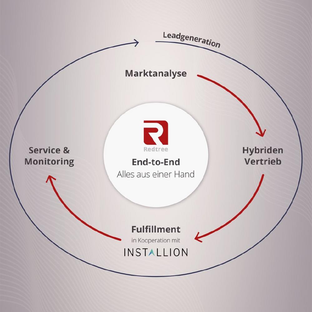 „Wir denken Photovoltaik ganzheitlich von der Lead Generation, über hybride Vertriebsstrecken und Fulfillment, bis hin zu Monitoring und Service“, so Michèl Dichter, Geschäftsführer bei Redtree. Sein Unternehmen ist seit über zwei Jahrzehnten am Markt und bietet Stadtwerken ein umfangreiches Know-how im Bereich der Photovoltaik. Durch die Kooperation mit Installion, dem Online-Marktplatz für Elektro-Installationen, deckt Redtree nun die gesamte Customer Journey ab. Redtree übernimmt die Markt- und Wettbewerbsanalyse, den Hybrid-Vertrieb, den Online-Verkaufsprozess sowie die Visualisierung der Anlagendaten für die Kunden der Stadtwerke.