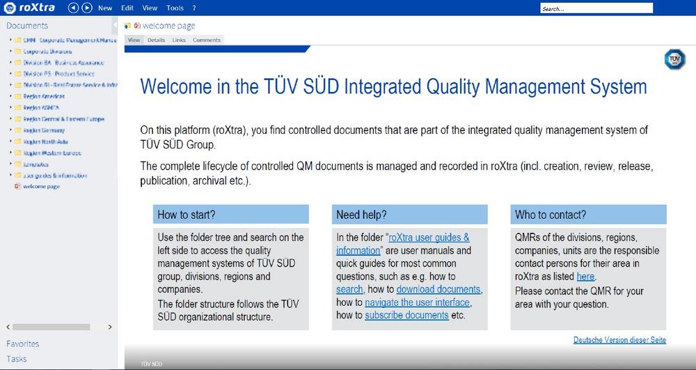 Die Einführung und Nutzung von roXtra erfolgte zunächst in zwei Geschäftsbereichen der TÜV SÜD AG. Durch einen kontinuierlichen Rollout und regelmäßigen Importtagen wurde das System auf weitere Geschäftsbereiche sowie auch weitere globale Regionen ausgeweitet. Der Vorteil: roXtra kann unternehmensweit als Dokumentenlenkungssystem genutzt werden, während die verschiedenen Geschäftsbereiche sich selbst administrieren können. So profitiert TÜV SÜD von einer weltweit genutzten, zentralen Plattform für alle QM-Dokumente, erhält eine bessere Kontrolle über die Lenkung sämtlicher Dokumente und mithilfe der direkten PDF-Ansicht einen schnellen und einfachen Zugriff. Die Bearbeitung ist dank des roXtra EditClient stark vereinfacht. Dieser ermöglicht zusätzlich, bestimmte Felder wie die Dokumenten-ID oder -titel sowie die Revisionsnummer direkt im Dokument zu hinterlegen. Auch die Verteilung erfolgt schnell, zuverlässig und kontrolliert durch Empfangs- und Lesebestätigungen. „Mit der Implementierung von roXtra und der sehr anwenderfreundlichen Benutzeroberfläche wurden die Prozesse unserer Qualitätsmanagementbeauftragten sehr viel effizienter, gleichzeitig wurden die Fehler in den Dokumenten minimiert – hierbei halfen insbesondere die sehr nützlichen roXtra Felder. Die Software wurde auch von allen Akkreditierungsstellen und Behörden, die uns auditieren, sehr gut aufgenommen,“ erklärt von Mylius.