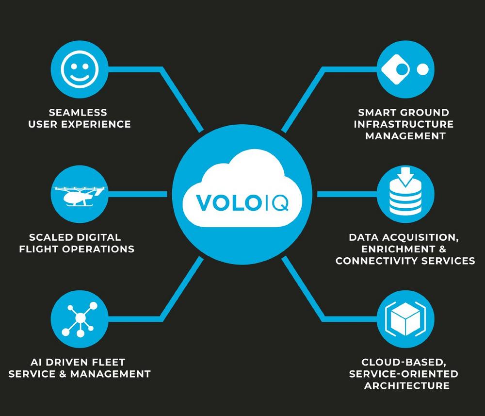 VoloIQ verbindet das gesamte Ökosystem. Dies beinhaltet Stadtverwaltungen, bestehende Mobilitätsoptionen wie z.B. öffentliche Verkehrsmittel und Mitfahrgelegenheiten, den Flug- und Bodenbetrieb bis hin zu kundenorientierten Dienstleistungen. Die Plattform wird die Informationen aller beteiligten Komponenten im Ökosystem verarbeiten und diese, sowie deren Zusammenspiel, jederzeit digital sichtbar machen.