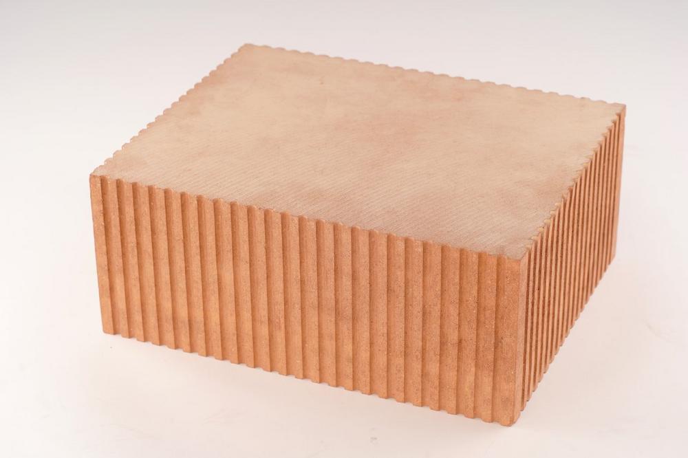 Der Erfolgsweg begann im ersten Schritt mit der Aufbereitung von Grundmaterialien. Die Basis bilden hier sortenreine Ziegelreste in besonders feinen Körnungsgrößen wie sie regelmäßig beim Schleifen von Planziegel anfallen. Daneben können auch Fraktionen von recyceltem Ziegelbruch verwendet werden. Solche liefert etwa die einzigartige Recyclinganlage bei Leipfinger-Bader, die seit September 2020 am Standort Puttenhausen (Landkreis Kelheim) in Betrieb ist. Dieser Ziegelsand wird mit einer speziellen Bindemittel-Mischung versetzt, wobei hier ein ganzer Baukasten an Rezepturen entwickelt werden konnte. Die verschiedenen Materialkombinationen lassen sich langfristig auch für unterschiedliche Produkte zum Einsatz bringen.