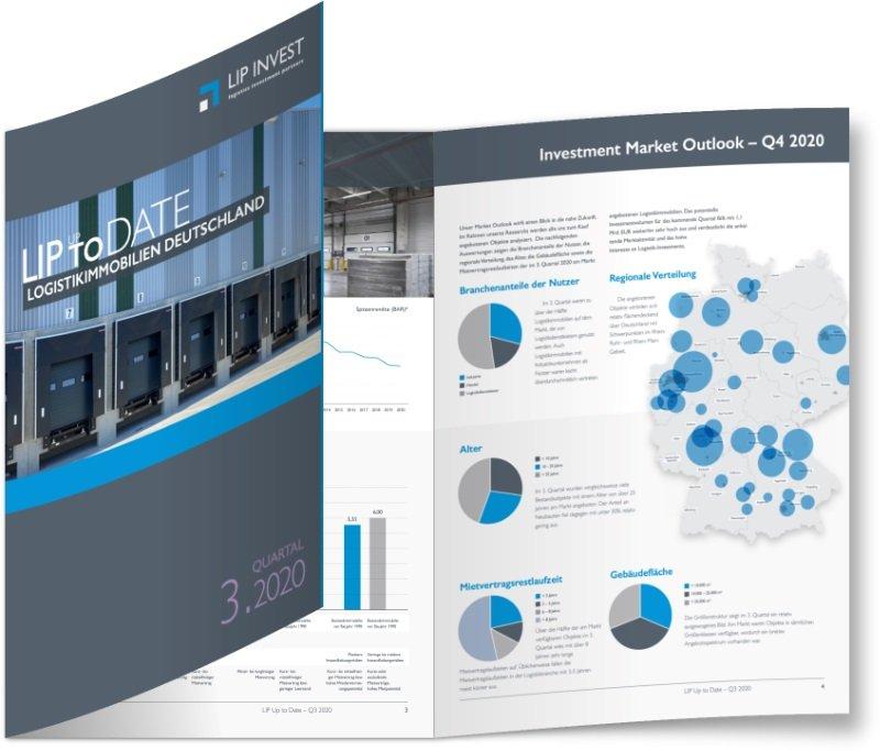 LIP Invest, führender Investmentmanager für Logistikimmobilien in Deutschland, veröffentlicht im Rahmen seines quartalsweise erscheinenden Marktberichts „LIP UP TO DATE – Logistikimmobilien Deutschland“ aktuelle Entwicklungen der immer stärker nachgefragten Assetklasse Logistikimmobilien. Neben einem Rückblick auf das dritte Quartal 2020 gibt der Bericht auch einen Ausblick auf die Entwicklung des Investmentmarktes bis zum Jahresende 2020. Der Marktbericht beinhaltet Zahlen und Informationen zum Transaktionsvolumen, zum Flächenumsatz und zum Neubauvolumen sowie zur Renditeentwicklung in Abhängigkeit von Gebäudealter, Standort, Objektqualität und Mietvertragslaufzeit.