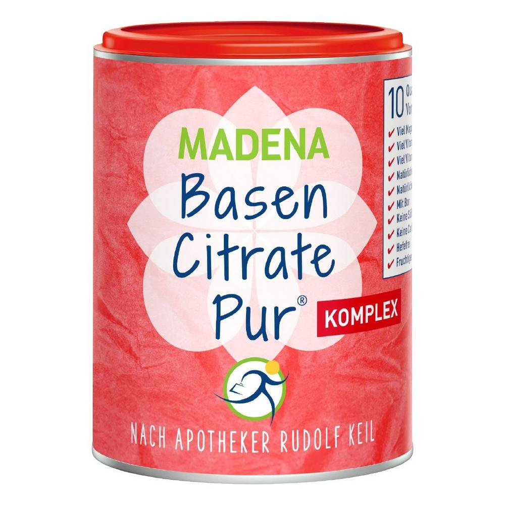 Mit dem veganen MADENA BasenCitrate Pur® KOMPLEX sorgen Sie nicht nur für einen ausgeglichenen Säure-Basen-Haushalt, sondern ergänzen die Nahrung auch mit Magnesium, Kalium, Calcium, Vitamin D3 Vitamin C aus reinem Acerola-Saftpulver, Vitamin K2, Silizium aus Bambus Bor, Zink, Mangan, Kupfer, Chrom, Selen und Molybdän.