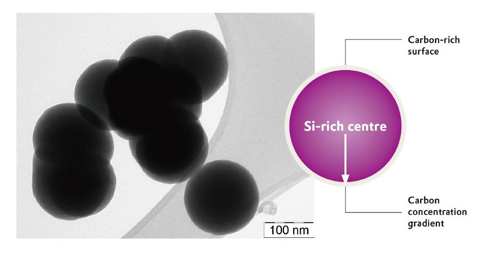 Das Pulver wird durch Gasphasensynthese hergestellt. Es besteht aus vereinzelten ungesinterten kugelförmigen Partikeln, die wenige hundert Nanometer groß sind. Innerhalb der amorphen Partikel steigt die Kohlenstoffkonzentration von innen nach außen an. Das sorgt für eine überlegene Stabilität. „Zudem sind die Kügelchen durch den höheren Kohlenstoffgehalt an der Oberfläche, besser vor Oxidation geschützt und leichter zu verarbeiten“, sagt Dr. Julia Lyubina, verantwortlich für die Entwicklung und Kommerzialisierung von Siridion® Black.