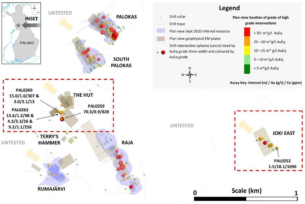 Herr Hudson, Chairman und CEO, erklärt: "Nach einigen aktiven Monaten im Feld ist dies ein starker Start, der sowohl hohe Gehalte als auch eine dicke Gold-Kobalt-Mineralisierung auf neuen Entdeckungen in der Nähe unserer bereits definierten Ressourcengebiete liefert. Diese Ergebnisse zeigen das Potenzial, die Ressource Rajapalot beträchtlich zu erweitern, und wir sind sehr gespannt auf die zusätzlichen Ergebnisse von 50 Bohrlöchern, die in den kommenden Monaten aus fünf einzelnen Prospektionsgebieten gemeldet werden."