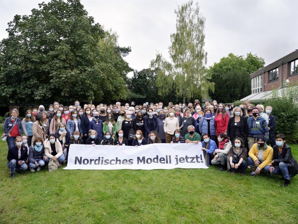 Der offizielle Startschuss für das bundesweite Bündnis Nordisches Modell fiel bereits am 21. Februar 2021. Ende März fand die erste Versammlung aller Delegierten der BündnispartnerInnen und die Wahl des Lenkungskreises statt. Der Bündnis-Gründung vorausgegangen war eine große und erfolgreiche Vernetzungs-Tagung im September 2020 in Bonn. Hier hatten sich unterschiedliche AkteurInnen aus ganz Deutschland dazu entschlossen, sich gemeinsam stark zu machen, ihre Kräfte zu bündeln und mit einer starken Stimme zu sprechen: für einen Wechsel in der Prostitutions-Politik nach dem Nordischen Modell.