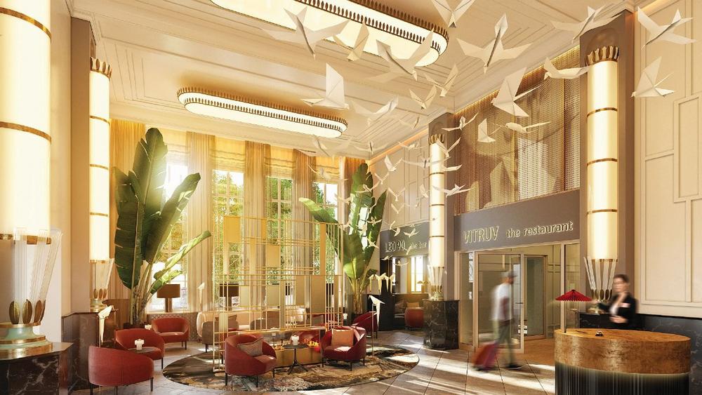 Dies werde auch beim aktuellen Re-Design des Leonardo Royal Berlin Alexanderplatz umgesetzt, das Ende August abgeschlossen sein wird. Architektin Madeleine Moes, die hier für die Umgestaltung der öffentlichen Bereiche zuständig ist, erklärt: „Wir widmen uns hier einem völlig neuen Raumerlebnis -. geprägt von zeitloser Eleganz, die die historische Architektur des Gebäudes trägt und mit einem neu interpretierten Art Déco Stil im Inneren aufgewertet wird. In den großzügigen Lobby- und Gastronomiebereichen legen wir mehr Wert auf Nischenbildung und bieten durch Raumteiler Rückzugsmöglichkeiten für kleine Gruppen an. Im Gastronomiebereich werden entzerrte Buffetstationen entstehen, damit sich nicht alle Gäste an einem zentralen Buffet zu nahe kommen müssen. Der Internetzugang mit Lademöglichkeiten wird im ganzen Haus angeboten, so dass man verteilt über alle Bereiche seinen Kontakten und Mails nachgehen kann und viele kleine Co-Working Bereiche zur Verfügung hat.“