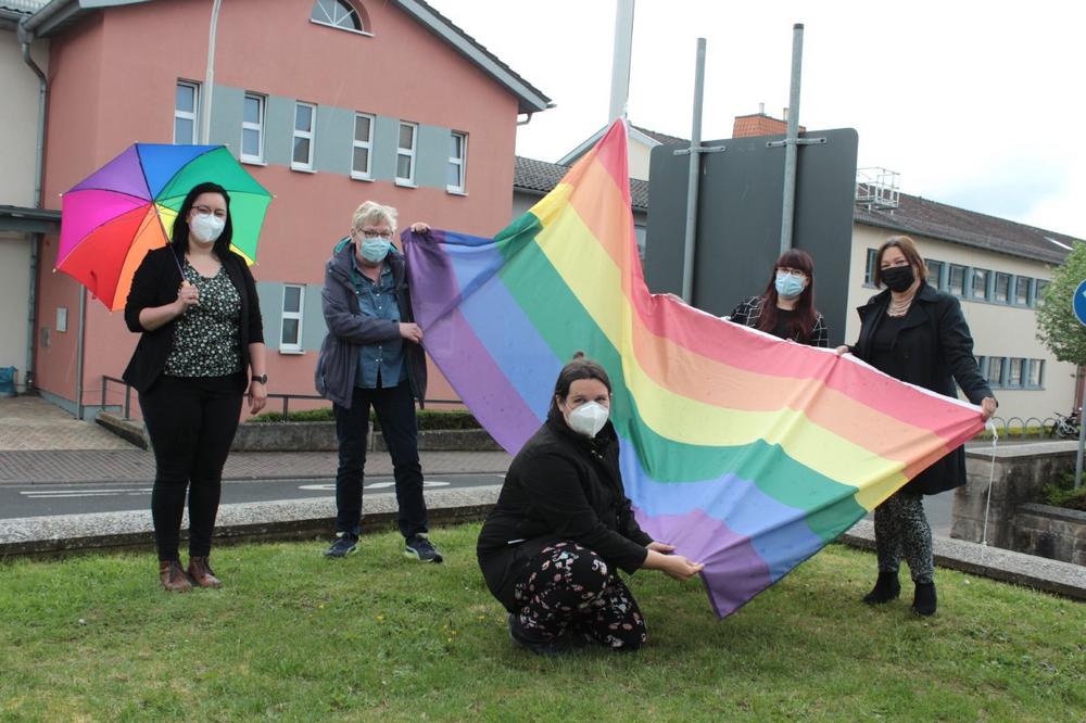 Mit dem Hissen der Regenbogen-Fahne anlässlich des IDAHOBIT (International Day against Homophobia, Biphobia, Interphobia and Transphobia – zu Deutsch: Internationaler Tag gegen Homo-, Bi-, Inter- und Transphobie) am Montag, 17. Mai, vor dem Gebäude der Kreisverwaltung des Vogelsbergkreises wurde ein Zeichen der Solidarität mit queeren Menschen gesetzt. „Wir wollen zudem auf die Diskriminierung von Menschen hinweisen, die aufgrund ihrer sexuellen Orientierung oder Geschlechtsidentität ausgegrenzt oder benachteiligt werden“, erklärt Jennifer Curlett von der Fachstelle Demokratieförderung und phänomenübergreifende Extremismusprävention – kurz DEXT – beim Hissen der Fahne.