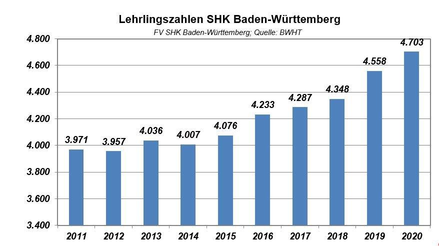 Inzwischen lernen in Baden-Württemberg über 4.700 Auszubildende eines der Gewerke Installations- und Heizungsbau, Klempnerei, Ofen- und Luftheizungsbau sowie Behälter- und Apparatebau, darunter 70 weibliche Lehrlinge.