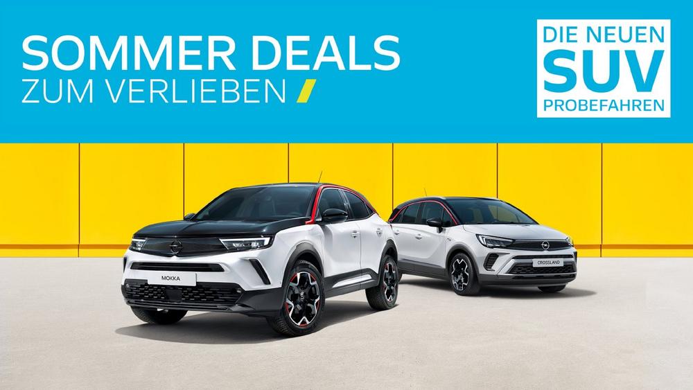 „Der neue Opel Mokka und der neue Opel Crossland begeistern mit ihren innovativen Technologien und versprühen puren Fahrspaß. Sie sind kompakt, wendig, ungemein praktisch und werden mit ihrem klaren, mutigen Design zum stylishen Blickfang. Da passen unsere ‚Sommer Deals‘ perfekt. Sie machen unsere unverwechselbaren Sympathieträger jetzt mit günstigen Leasingraten noch attraktiver. Statten Sie Ihrem Opel-Händler direkt einen Besuch ab und erleben Sie die neuen Opel-SUV hautnah bei einer Probefahrt“, lädt Opel Deutschland-Chef Andreas Marx ein.