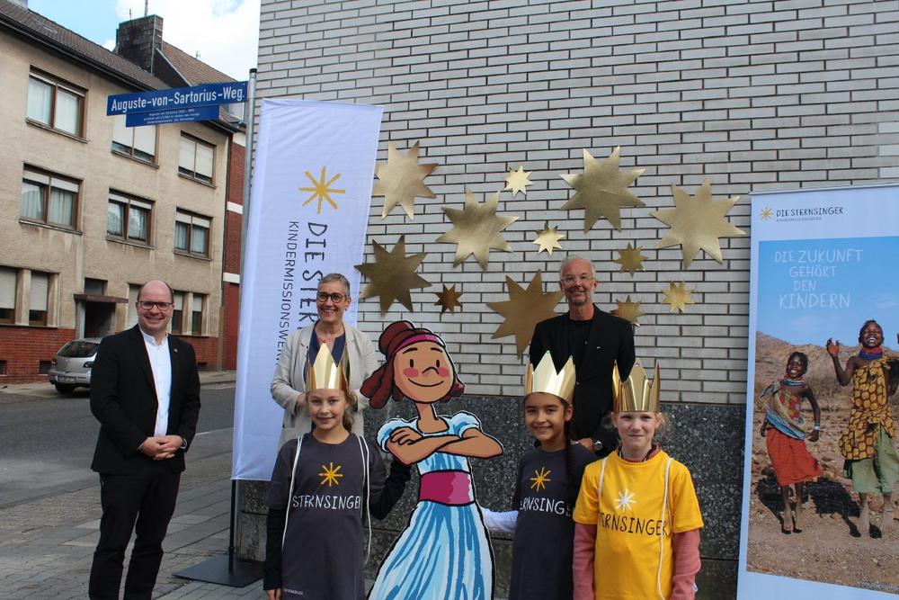 Pfarrer Dirk Bingener, Präsident des Kindermissionswerks, betonte in seiner Ansprache: „Auguste gehört zweifelsohne zu den großen Persönlichkeiten der Kaiserstadt. Wir freuen uns sehr, dass unsere Gründerin durch den Auguste-von-Sartorius-Weg nun noch einmal mehr ins Bewusstsein der Aachener rückt und dauerhaft im Stadtbild präsent wird.“ Bingener hob vor allem die besondere Geschichte des Hilfswerks hervor: „Kinder haben die Kraft, die Welt zum Guten zu verändern. Auguste hat damals ihre Vision von einer gerechteren Welt hartnäckig verfolgt. Und Hunderttausende Kinder tragen als Sternsinger die Idee von Auguste bis heute weiter. Die Aktion Dreikönigssingen ist zur weltweit größten Solidaritätsaktion von Kindern für Kinder geworden und Mädchen und Jungen in aller Welt kann durch den Einsatz der Sternsinger geholfen werden.“