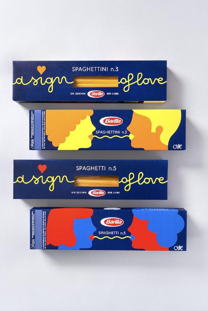 Liebe hat viele Gesichter: Es gibt sie in Familien, zwischen Eltern und Kindern, besten Freunden, und Liebenden. Doch Liebe kann auch in Form von Akzeptanz, Anerkennung, Sympathie und Empathie erscheinen – wie zum Beispiel gegenüber der einen hilfreichen Arbeitskollegin, dem netten Nachbarn oder den Unbekannten im Alltag, die sich alle oft als die kleinen Retter in der Not erwiesen haben. Mit „A Sign of Love“ [„Ein Zeichen der Liebe“] und den vier von der italienischen Künstlerin Olimpia Zagnoli gestalteten Sammeleditionen der Pasta-Klassiker Spaghetti N.5, Spaghettoni N.7, Spaghettini N.3 und Capellini N.1 möchte Barilla wortwörtlich ein Zeichen im Sinne der Liebe setzen.