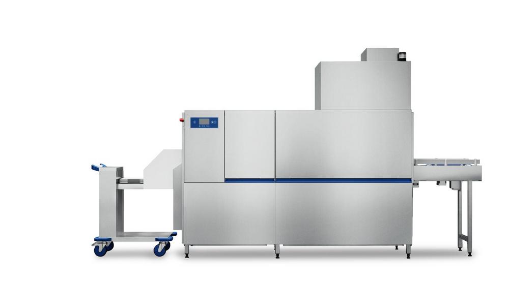 An der neu gestalteten Maschinenfront macht die INFOTRONIC Steuerung auf Augenhöhe das Bedienen quasi im Vorbeigehen möglich. Zum einen werden Temperaturen farbig dargestellt, zum anderen gibt es mehr Funktionen als beim Vorgängermodell – beispielsweise das Autostartprogramm. Die FTT kommt serienmäßig mit zwei Geschwindigkeitsstufen; optional kann eine weitere Stufe eingebaut werden. Damit lassen sich bis zu 22 Tabletts pro Minute hygienisch einwandfrei spülen und trocknen.