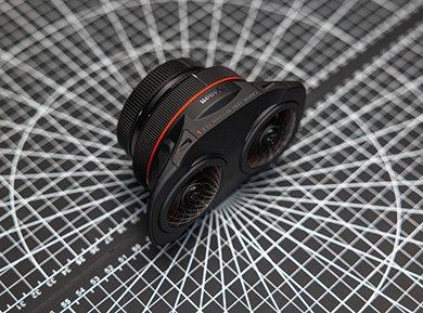 Die beiden nach vorne gerichteten Fisheye-Objektive des RF 5.2 mm F2.8 L DUAL FISHEYE liefern ein extrem weites Sichtfeld von 190 Grad und bilden die Grundlage für die stereoskopische VR-Erfassung. Die fortschrittliche Objektivkonstruktion von Canon ermöglicht die Projektion von zwei Bildern auf den einzelnen Sensor einer Kamera ‒ für eine perfekte Ausrichtung und Synchronisation direkt aus der Kamera heraus. Damit vereinfacht das Objektiv eine VR-Erfassung in der Praxis gegenüber einem Zwei-Kamera-System erheblich.