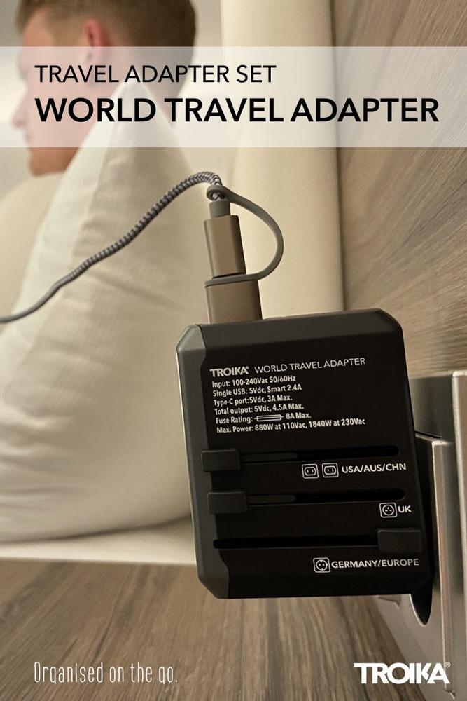 - Der WORLD TRAVEL ADAPTER ist für alle gängigen Steckdosen geeignet. Die einzelnen Kontakte können Sie nach Ihre Bedarf ganz einfach herausschieben.