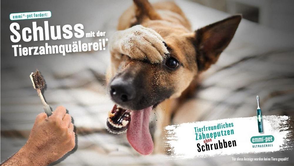 Denkanstoß für Hundebesitzers gegeben“ erklärt Cüneyt Emekci, Geschäftsführer von Emmi Ultrasonic. In Print, Social Media sowie Bewegtbild entstand so ein integrierter Auftritt, der mit viel Augenzwinkern ein bisher unterschätztes Thema in den Mittelpunkt rückt. Dass der Her-steller von Ultraschallzahnbürsten hier bessere Lösungen zum Zähneputzen von Tier besitzt, ist sicher kein Zufall, steht aber nicht im Zentrum der Awareness-Kampagne. Die Kampagne stellt den Kommunikationsschwerpunkt der Zahnhygienemarke für Oktober und November dar.