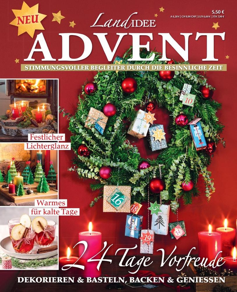 Ein einzigartiges Heftkonzept schenkt den Leserinnen und Lesern in Form eines Adventskalenders zum Blättern 24 Tage voller Vorfreude: Von einfachen Ideen zum Selbermachen, über leckere Rezepte, bis hin zu besinnlichen Sprüchen oder Zitaten bietet „LandIDEE Advent“ ganz viel Atmosphäre für eine genussvolle Vorweihnachtszeit. Das Sonderheft zelebriert Traditionen der Adventstage und Inspirationen für eine stressfreie, schöne Vorbereitungszeit.
