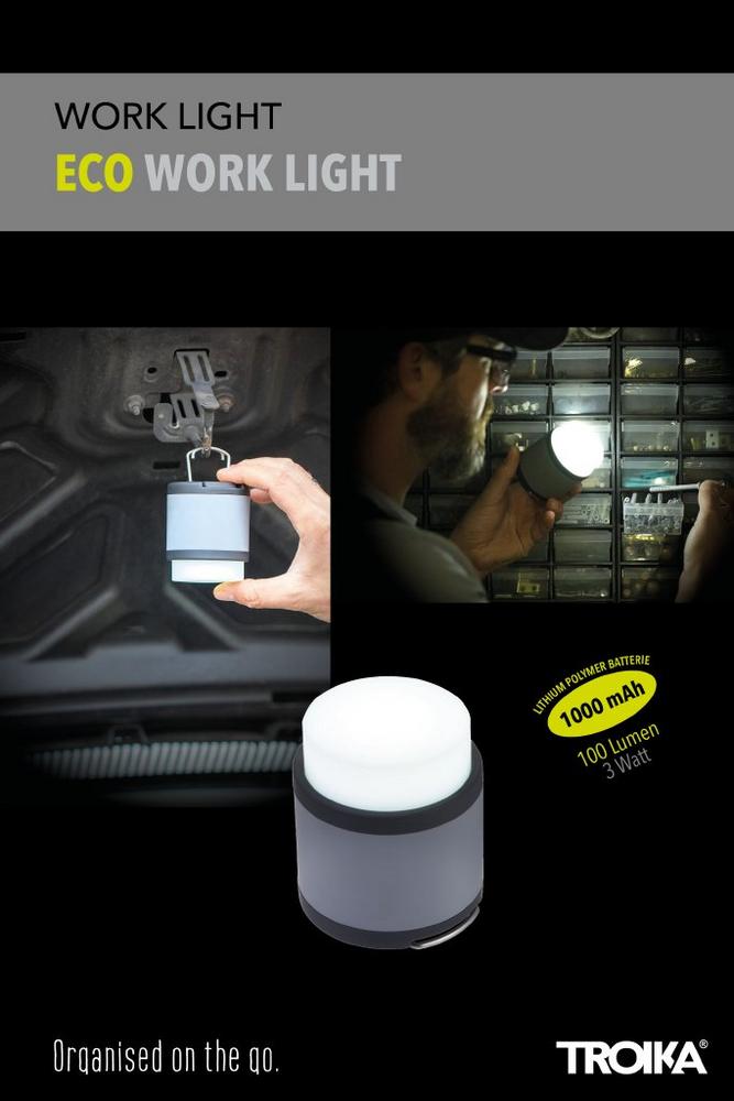 - Ob als Nachttischlampe oder beim Arbeiten im dunklen Keller – durch Drücken auf den Lampenknopf erhellt die ECO WORK LIGHT den Raum.