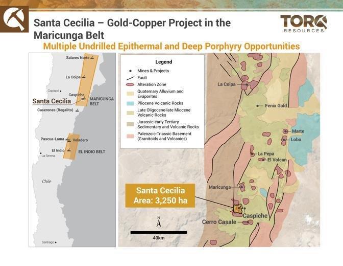 “As an explorationist, to be able to identify, acquire and begin exploration at a project such as Santa Cecilia, located within the gold-copper porphyry belt in Maricunga, is an exceptional event. Our group in Chile has been pursuing this project for many years, and finally, with the full Torq Resources team, we have been able to negotiate a favorable agreement. This is a significant milestone, and we very much look forward to initiating exploration at a project we believe holds significant potential for the discovery of a world-class gold-copper deposit.”