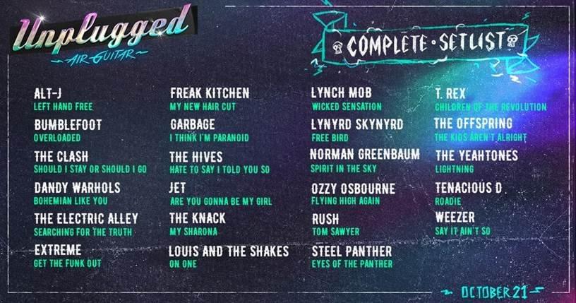 Auf der Unplugged-Bühne warten einige der größten und coolsten Songs von weltberühmten Rockbands, darunter The Offspring, Weezer und Ozzy Osbourne. Mit VR-Headset und Handtracking spielt man Luftgitarre live auf der Bühne vor einer immer größer werdenden Menschenmenge. Auf der Tour stehen zahlreiche virtuelle Gitarren und Verstärker zur Auswahl, um die Fans zu begeistern. Die Finger müssen auf die Akkorde abgestimmt und die Saiten im richtigen Moment angeschlagen werden, um zur Rocklegende zu werden.
