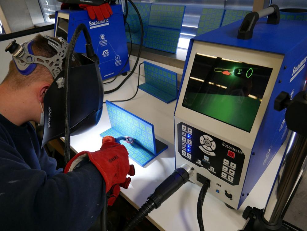 Vier nagelneue Soldamatic-Trainingsschweißgeräte hat die Bildungsakademie in Singen für die Schweißausbildung angeschafft, an denen die Kursteilnehmenden erste Erfahrungen sammeln können. Für Schweißlehrmeister Michael Vostry sind die Geräte ein echter Gewinn. „Das Schweißen ist sehr realistisch. Man kann alle möglichen Verfahren, Nahtformen, Materialstärken und Schweißpositionen einrichten. Das Schweißenlernen kostet normalerweise immer eine Menge Material, das gerade jetzt teuer ist. Das umgehen wir so und es gibt auch weniger gesundheitliche Risiken,“ erläutert er. Das integrierte Trainingsprogramm des DVS fördere außerdem die Motivation: „Da entsteht schon ein bisschen Kampfgeist untereinander. Man arbeitet sich hoch: Vom Anfänger über den Fortgeschrittenen bis zum Level ‚Fertig für die Kabine‘“, so der Lehrmeister. Über eine zusätzliche Teacher‘s Software kann Vostry den Lernfortschritt seiner Schüler nachverfolgen. Damit jeder mal in den Genuss der VR-Anwendung kommt, wechseln die Auszubildenden im Kurs zwischen Theorie-Selbstlernphasen und dem virtuellen Schweißen an den vier Geräten. „Wir machen das auf einem Top-Niveau hier,“ fasst Vostry zusammen.