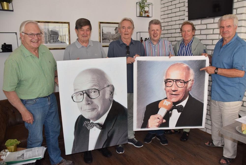 Der „Freundeskreis Rainer Bange“ um Werner Bayer ( Zweiter von links. Bild: Holger Hackendahl) hat ein abwechslungsreiches Programm zusammengestellt. Neben Ausschnitten aus seinen TV- und Radio- Sendungen und den „Kämpfen“ der Kleinschmidts (Käthe, Norbert, Robert, Otto und Willi ) mit den Tücken von Bürokratie und Technik kommen Weggefährte und Freunde zu Wort. Wie Liedermacher und Mundartautor Rainer Weisbecker, Britta Hoffmann-Mumme (Trudi, die Putzperle von Schloss Philippsruhe), Werner Lohr (Moderator hr 4), das Gitarrenduo „Back Again“ (Blues vom Feinsten) sowie Richard Schaffer- Hartmann (ehem. Leiter der Hanauer Museen) und TV- Journalist Frank Lehmann mit Moderation und Lesung. Musikalische Umrahmung: das Mellow-Tone-Trio, das Bange viele Jahre lang auf seinen Tourneen durch Hessen begleitete.