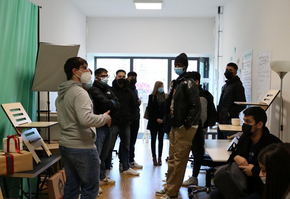 Danach versammelten sich alle Beteiligten im Kreativbüro des Unternehmens, wo Leonard Beck den Schüler*innen die Geschichte, das Geschäftsmodell und den Arbeitsalltag seines Startups näherbrachte. Die Schüler*innen zeigten großes Interesse an den wirtschaftlichen Zusammenhängen und stellten ihrerseits diverse Produkt- bzw. Geschäftsideen vor, die sie zuvor in kleineren Projektgruppen erarbeitet hatten. Zu guter Letzt kamen auch die Praktikumsmöglichkeiten bei Standsome zur Sprache.