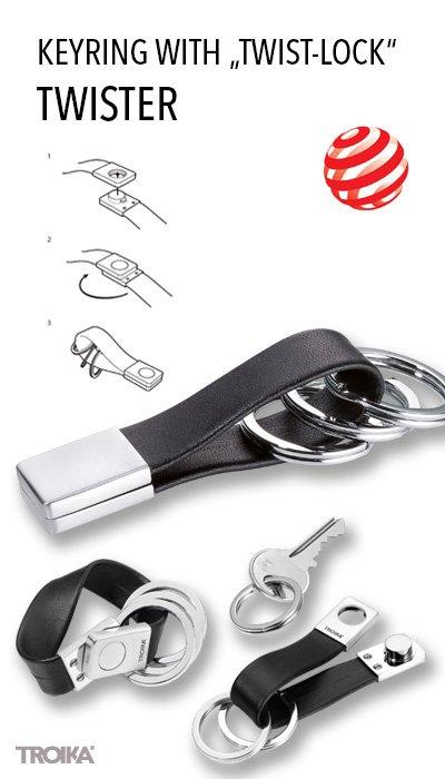 - The new TROIKA classic TWISTER with rounded closure, for easy hooking in and out of keys.