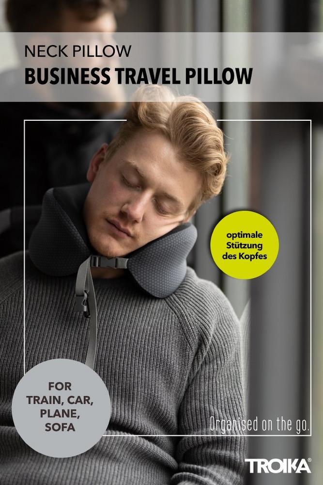 - Who hasn’t experienced shoulder or neck pain on long flights or journeys. Not with the TROIKA travel pillow, which optimally relieves and stabilises these areas of pain! Fits in any hand luggage thanks to the compression pocket. Cushion cover suitable for machine wash.