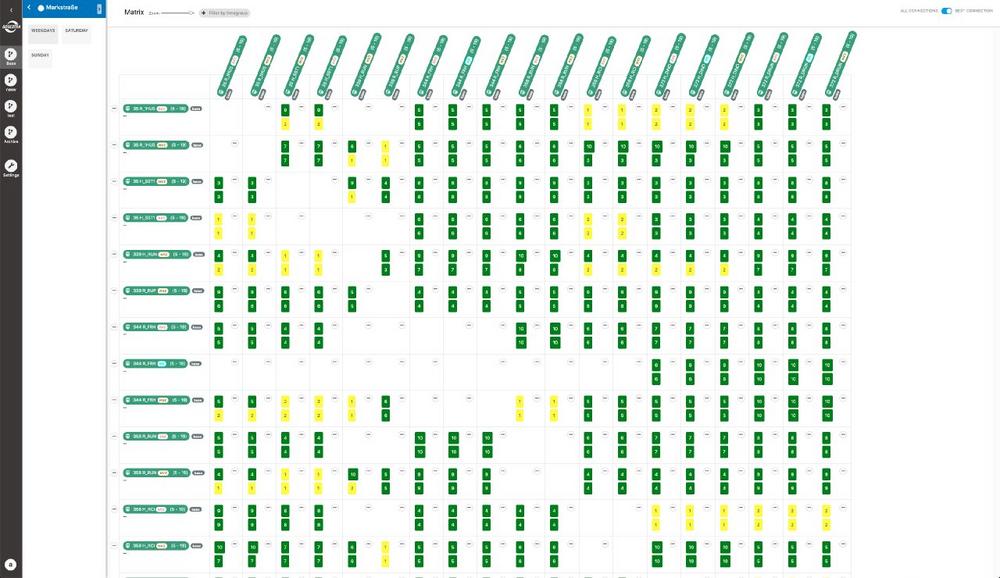 Die gemeinsam mit Fahrplanern für Fahrplaner entwickelte Web-Applikation unterstützt auf Basis von Algorithmen und Machine Learning Komponenten im Zusammenspiel mit einer intuitiven Benutzeroberfläche die Nahverkehrsplaner den Grundstein für eine intelligente und skalierbare Zukunftsplanung zu legen.