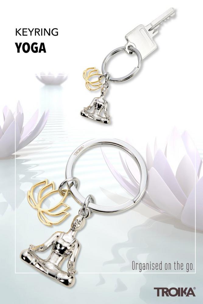 Der kleine Schlüsselanhänger mit der großen Symbolik. Meditierende Frau und Lotusblüte geben ein deutliches Signal: anschauen, tief einatmen, entspannen. Für die kleine meditative Auszeit zwischendurch. Metallguss glänzend, gold- und silberfarben.