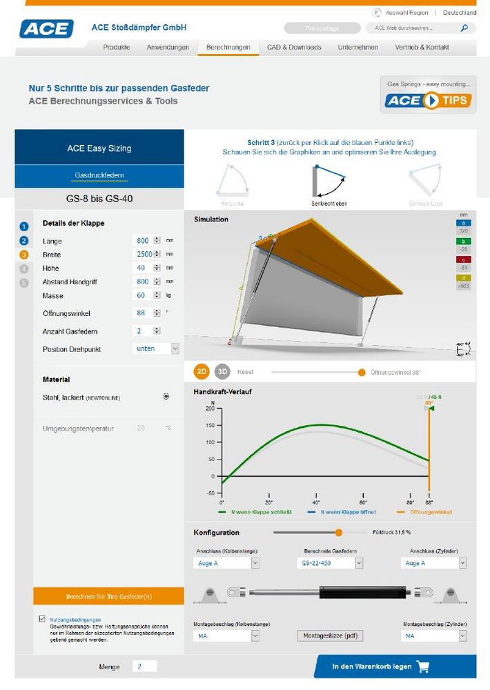 Das Online-Programm zur Berechnung von ACE Industriegasfedern ist hier zu finden: