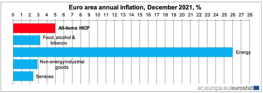 Zunächst ist es wichtig zu verstehen, wie sich die Inflation (HVPI) interpretieren lässt. Die Europäische Zentralbank (EZB) misst die Preisentwicklungen anhand über 700 verschiedener Produkte und Dienstleistungen, die sich grob in 4 Kategorien einteilen lassen: (i) Lebensmittel, Alkohol und Tabak; (ii) Energie; (iii) Industrieerzeugnisse ohne Energie; (iv) Dienstleistungen. Wie stark sich jede einzelne Komponente auf die Inflation auswirkt, hängt davon ab wie stark diese konsumiert wird. Während Kaffee beispielsweise eine Gewichtung von 0,4 Prozent hat, wird Benzin (einschließlich anderer Pkw-Treib- und Schmierstoffe) mit 4,6 Prozent gewichtet. Folglich wirkt sich die gleiche prozentuelle Änderung unterschiedlich stark auf die Inflation aus. Am stärksten ins Gewicht fallen Dienstleistungen (41,8 Prozent) gefolgt von Industrieerzeugnissen ohne Energie (26,9 Prozent) und Lebensmitteln, Alkohol und Tabak (21,8 Prozent). Energie fällt mit 9,5 Prozent am wenigsten ins Gewicht.